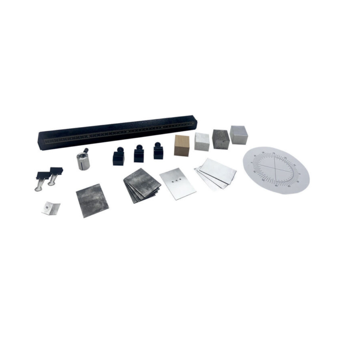 For use with the traditional range of radioactive sources. Comprising of an Aluminium extrusion bench with graduated scale, set of radiation absorbers and radiation collimator.